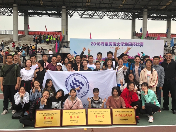 2018年重庆市大学生田径锦标赛于5月2日—5月5日在西南政法大学举行,beat365在线唯一官网登录田径代表队派出37名队员参加了女子甲组(普通大学生)、男女丙组(高水平)三个组别的比赛。经过队员的奋勇拼搏,共获得了5金、13银、9铜、女子甲组团体第一,男子丙组团体第三、女子丙组团体第四名及体育道德风尚奖的优异成绩。