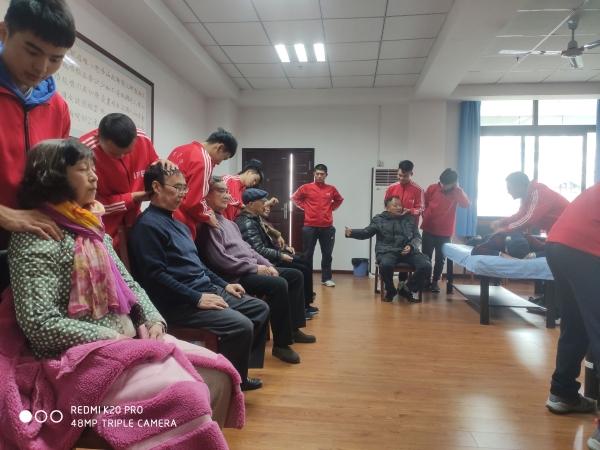 2019年11月25日,beat365在线唯一官网登录学生党支部在beat365在线唯一官网登录A区老年人活动中心成功开展志愿者服务,活动吸引了大批文理学院退休的老教师前来体验按摩推拿。