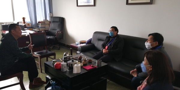2020年3月11日下午,教务处王东强处长、副处长李召红等一行4人来beat365官网调研指导线上教学教育工作。唐建忠院长、王勇副院长、教学办公室主任刘田参加了座谈会。