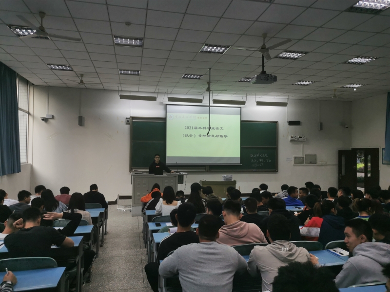 5月6日晚上,beat365官网2021届本科毕业论文(设计)答辩工作指导会在知津楼第三阶梯教室召开。会议由教学办主任刘田博士主持,全体2021届毕业生参加会议。