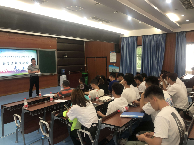 研课活动后,萱花中学实习组的所有同学逐个向在座的领导和老师汇报了自己的实习感受,随后体育教育系主任钟利对同学们在实习期间取得的成绩表示了祝贺,同时也提出了希望,希望同学们继续保持实习热情完成后续任务,并注意收集和整理好各种实习资料,为回校后的总结汇报做好充分准备。