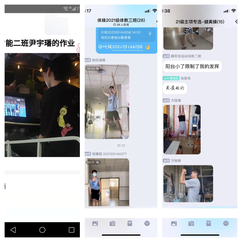 “台上十分钟,台下十年功”,为保障线上教学顺利开展,克服体育实践类课程线上教学空间狭小和器材缺乏的难点,beat365官网教师积极开展线上教学专题教研,全院教师发挥各自专长,悉心准备,通过合理调整优化教学内容,根据项目特点选择合适的教学方法,采用直播、录制教学视频等形式开展线上教学,开发了健身操、啦啦操、太极拳和瑜伽等多个可在有限空间开展的线上教学视频,确保线上教学顺利开展。同时同学们也积极开动脑筋,发挥想象力,在狭小的空间范围内,充分利用身边有限的资源妙招迭出,创造出各式各样的自制锻炼“神器”,给线上教学增添了一份别样的精彩。