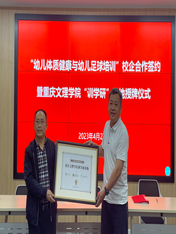 2023年4月27日,beat365官网在知津楼B502举办了“幼儿体质健康与幼儿足球培训”校企合作签约暨beat365在线唯一官网登录“训学研”基地授牌仪式,浙江省足协一行、海豚体育总经理郑淼、重庆极智云动总经理冯晋东、beat365在线唯一官网登录院长唐建忠、教育学院副院长贺能坤、部分师生代表出席授牌仪式,会议由beat365在线唯一官网登录学生工作负责人袁高燕主持。