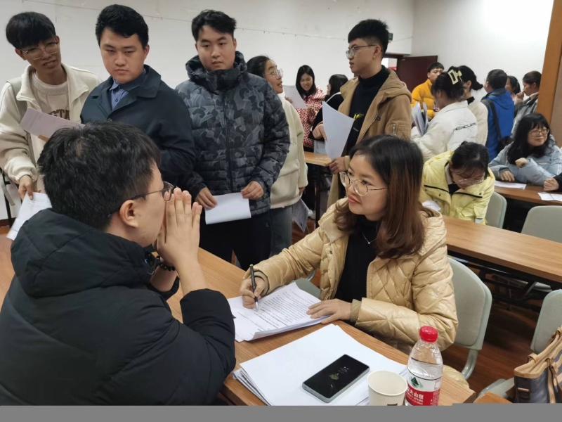 招聘会分为两个阶段,第一阶段招聘学校各负责人以PPT和视频宣传片的形式就本校办学历史、办学理念、办学成效和专业学科需等方面进行介绍和说明,并鼓励同学们积极投递简历。宣讲会结束,各学校分区分片接受同学们的简历并一一进行面试。整个招聘活动进行了三个多时,不少同学从外地乘坐高铁赶回学校。招聘现场气氛热烈,同学们踊跃参加,纷纷投递个人简历。
