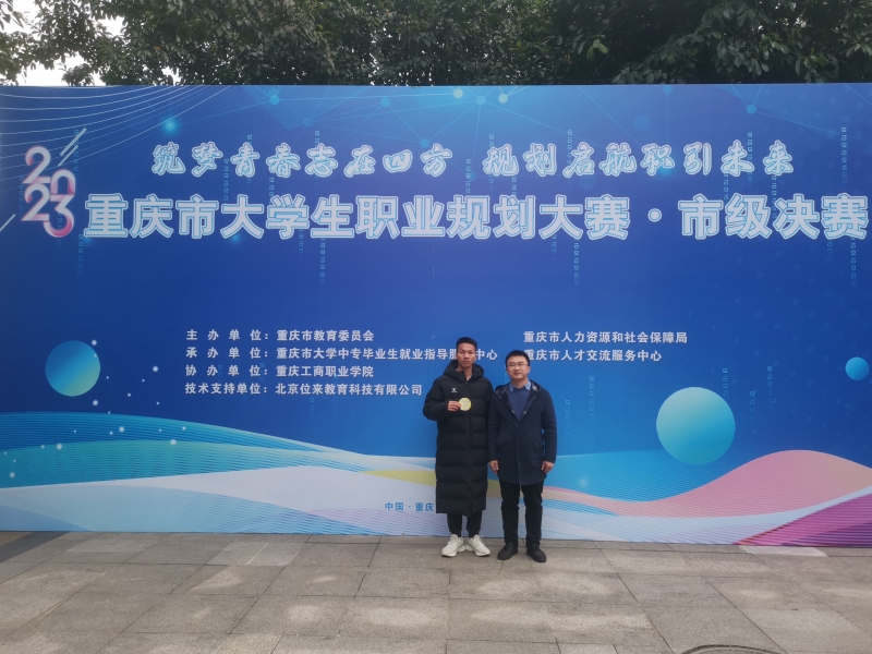 2023年12月19日-20日,首届全国大学生职业规划大赛暨重庆市2023大学生职业规划大赛(市级决赛)在重庆工商职业学院举办,从全市高校脱颖而出的80名选手会聚科学会堂,经过激烈角逐,beat365官网学子蔡甫学代表学校荣获首届全国大学生职业规划大赛暨重庆2023大学生职业规划大赛(市级决赛)银奖,指导老师是beat365官网学生办公室主任、团总支书记卢德强。