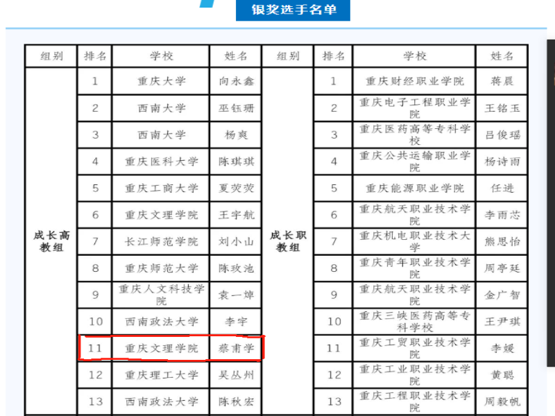 beat365官网学子蔡甫学荣获首届全国大学生职业规划大赛暨重庆市2023大学生职业规划大赛(市级决赛)银奖
