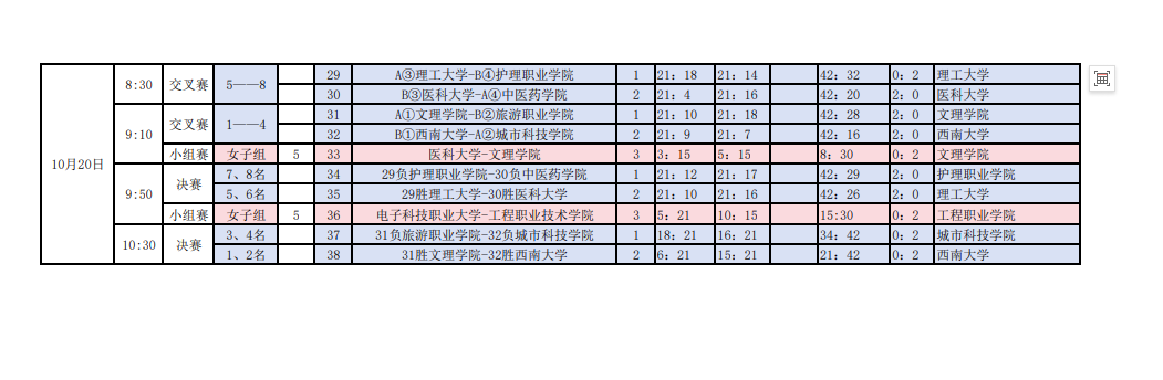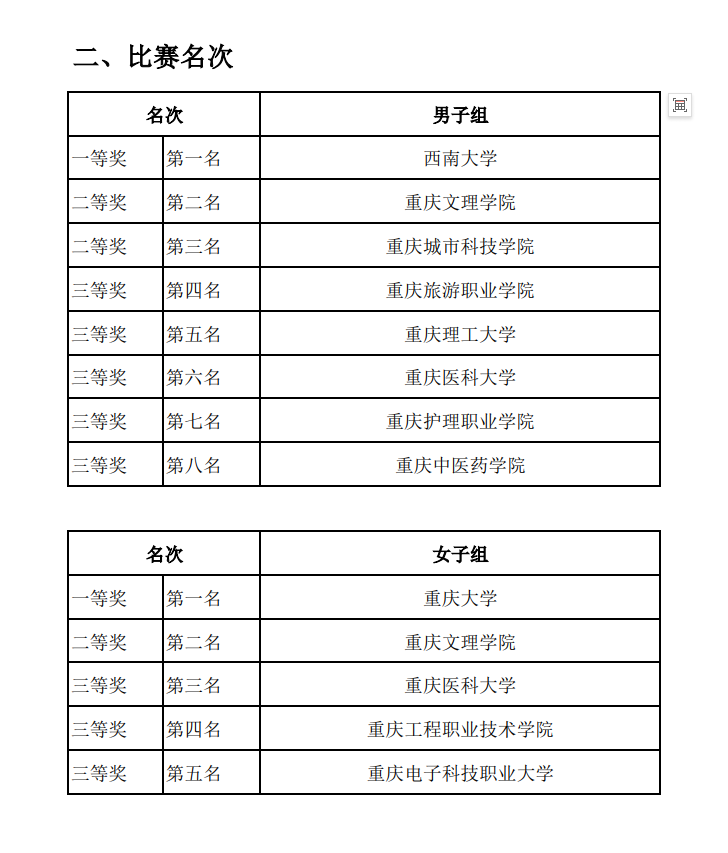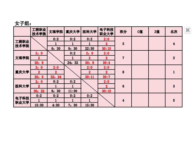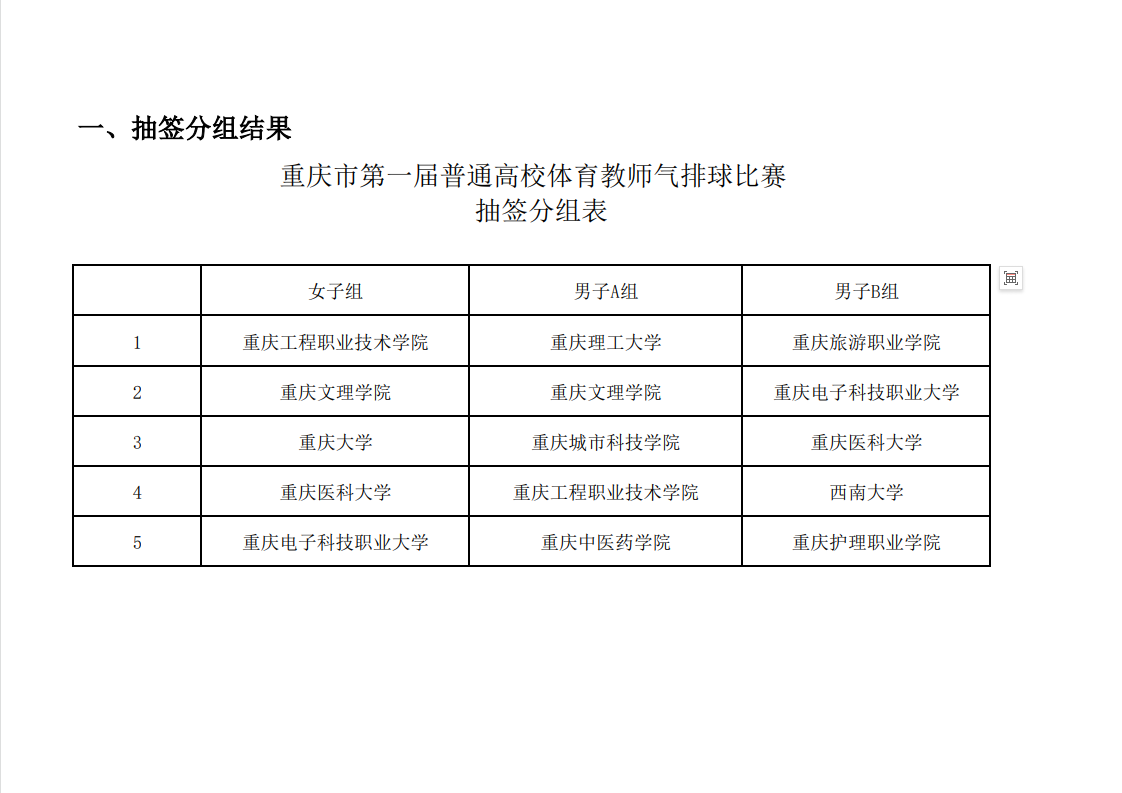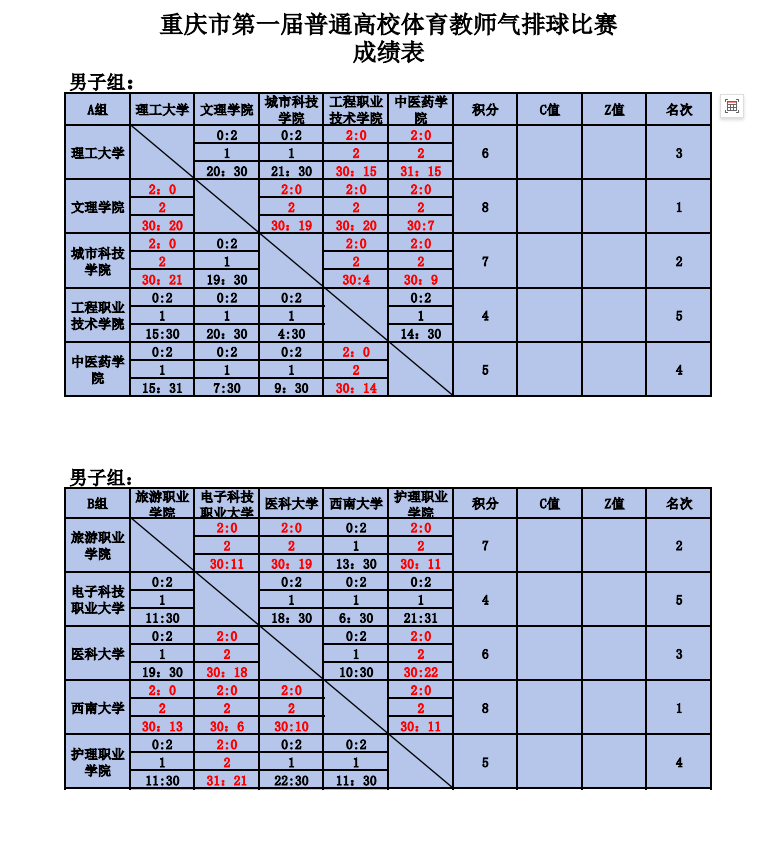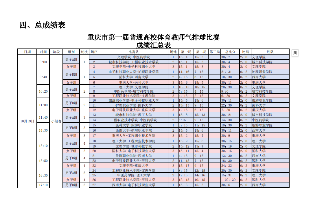 重庆市第一届普通高校体育教师气排球比赛成绩册