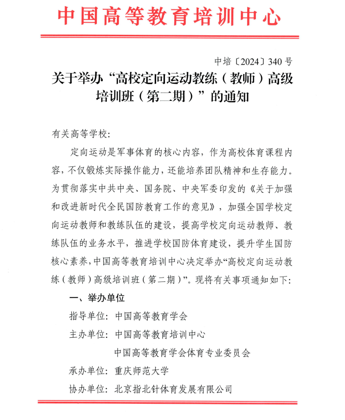 关于举办高校定向运动教练(教师)高级培训班(第二期)的通知