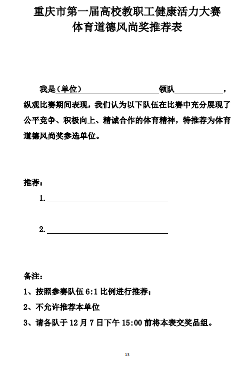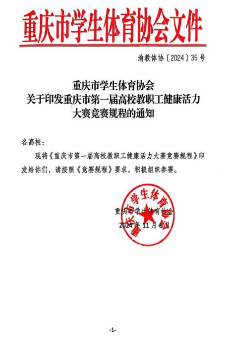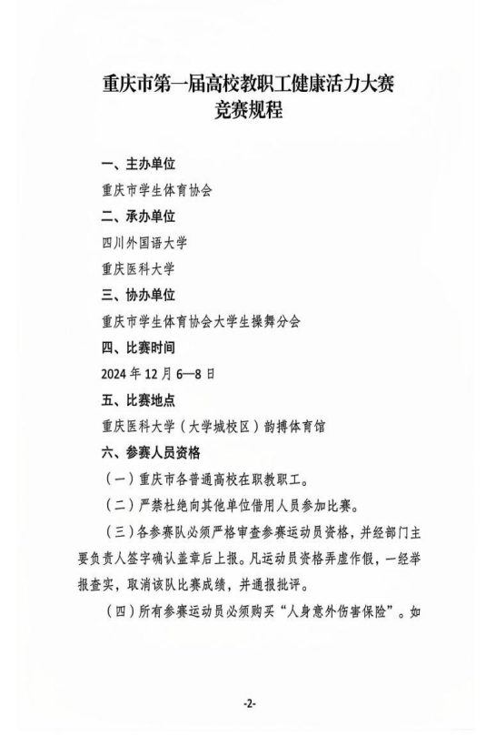 关于重庆市第一届高校教职工健康活力大赛竞赛规程的通知