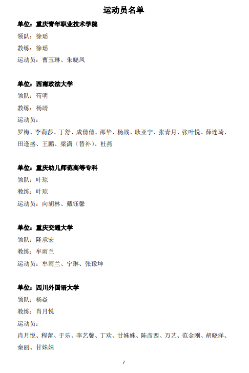 重庆市学生体育协会大学生专委会