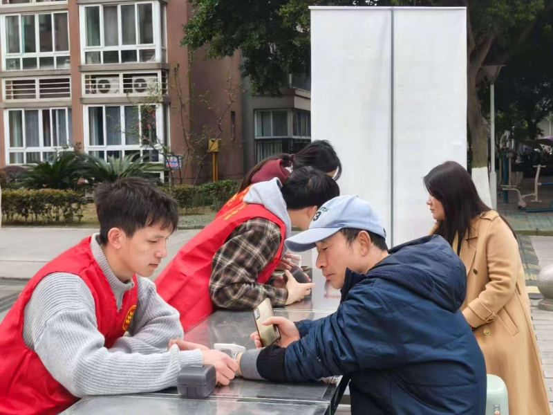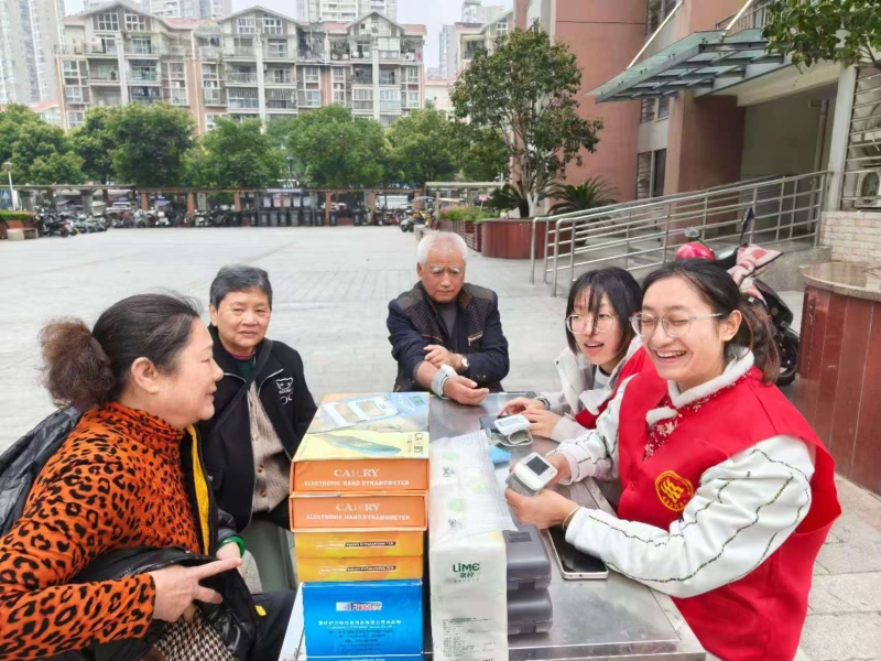 在测血压和握力区域,前来咨询的人群络绎不绝。师生们认真为每一位群众测量,详细记录数据,并结合个人情况进行健康指导,提醒居民关注血压变化和肌肉力量训练,保持良好生活习惯。