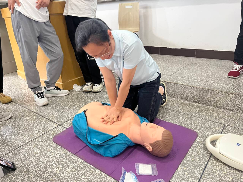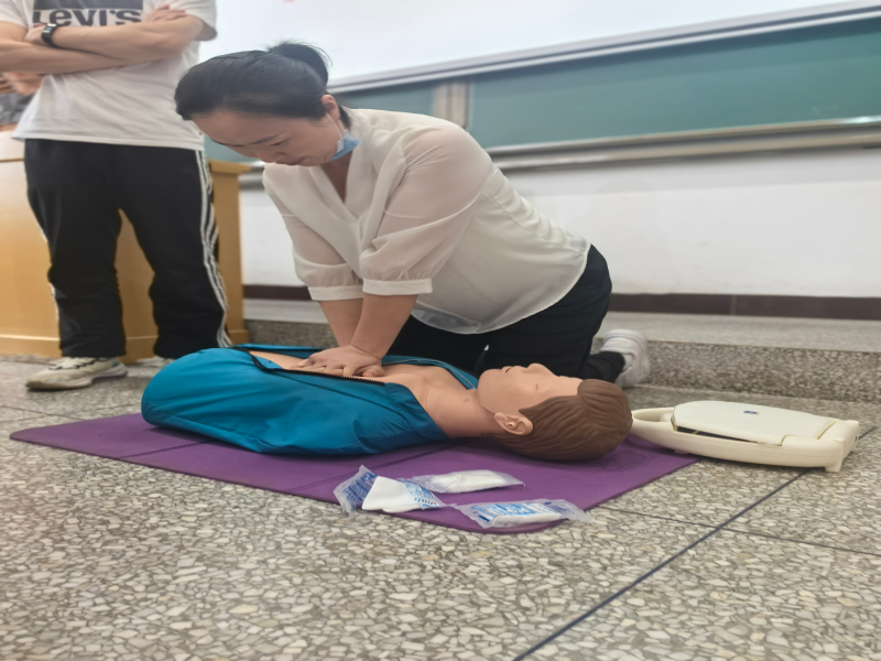 理论授课结束后,便是紧张且充实的实操演练阶段。阶梯教室瞬间化身为实战 “赛场”,beat365在线唯一官网登录的教师们踊跃参与。在模拟人模型旁,他们依次按照所学知识进行心肺复苏操作,从手势到力度,从频率到节奏,彼此间互相观摩、交流,遇到问题及时请教讲师。对于AED的使用,大家也反复练习,熟悉每一个按键、每一步提示。红十字会的志愿者们穿梭其中,手把手纠正不规范动作,确保每位教师都能精准掌握关键救护技能。