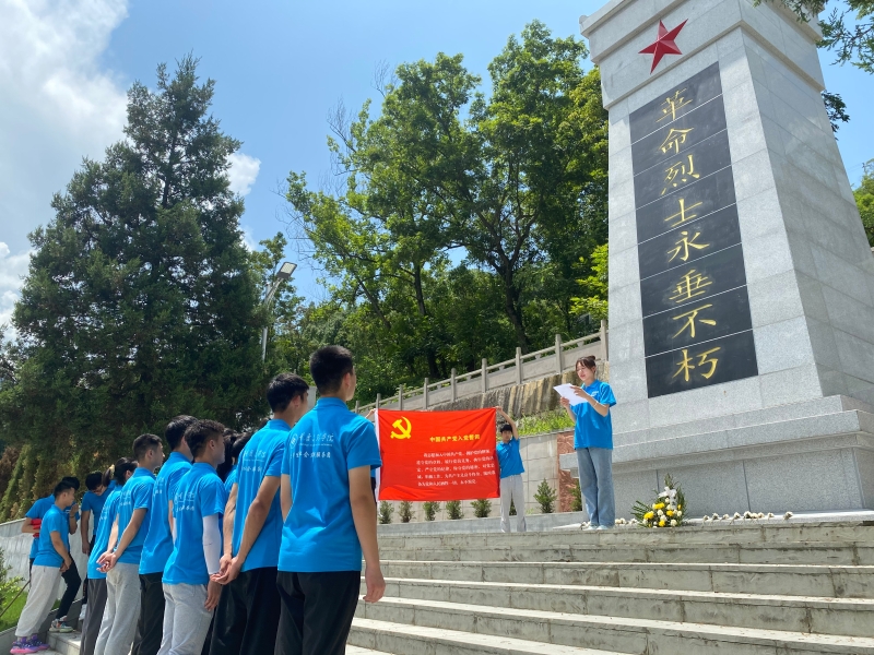 2022年6月30日,beat365官网赴武隆区江口烈士陵园开展入党宣誓仪式暨党性实践锤炼活动,学院部分党员教师、学生党员及入党积极分子20余人参加,活动由学生第一党支部书记卢德强主持。
